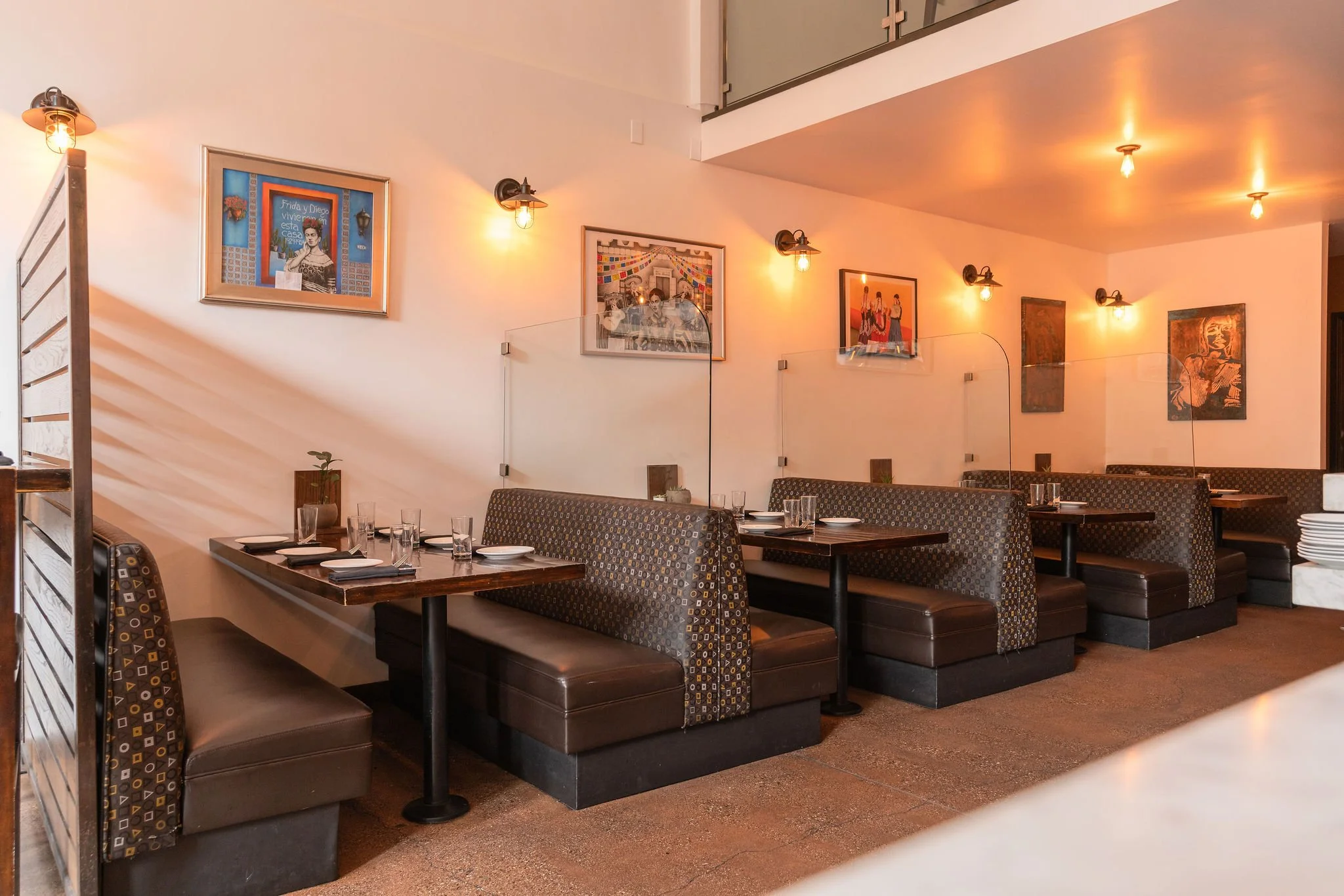 Our Main Dining Room is a versatile and inviting space, perfect for both seated dinners and standing reception-style events. The room accommodates up to 50 guests using a combination of booths and high-top tables, with bar stools removable to make it easier for guests to order directly at the bar. For standing receptions, the space can host up to 65 guests, offering plenty of room to mingle, socialize, and enjoy the vibrant energy of the restaurant.